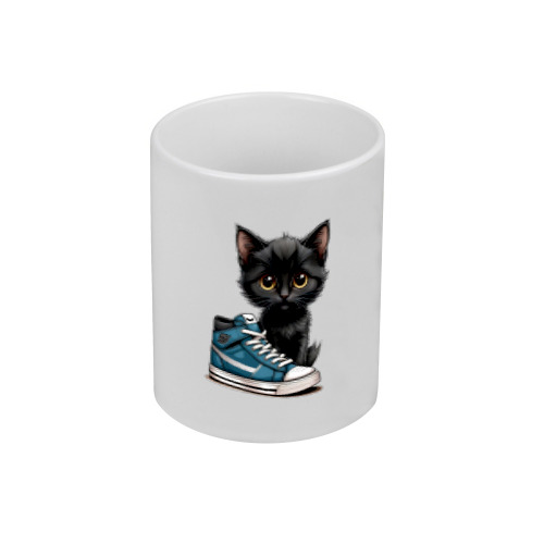 Мужская футболка «Чёрный котёнок с кроссовком»
