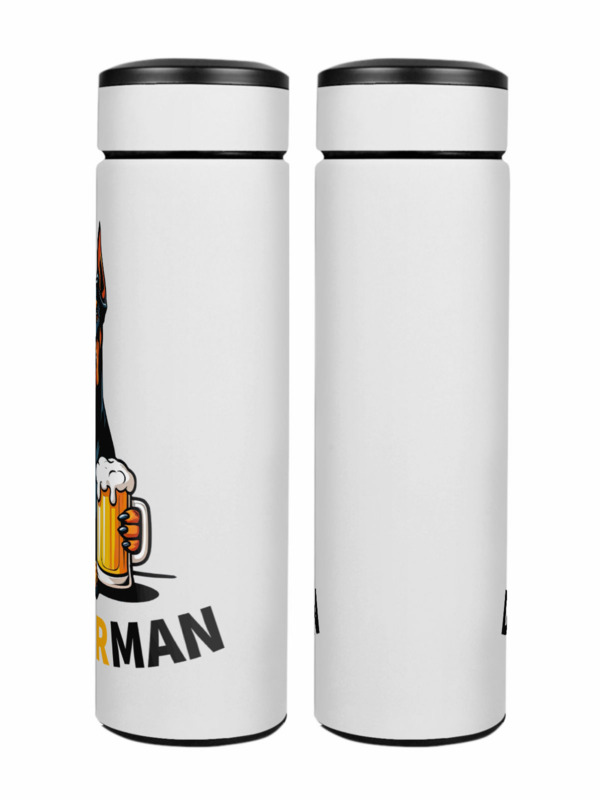 Термос «Доберман с пивом. Игра слов»