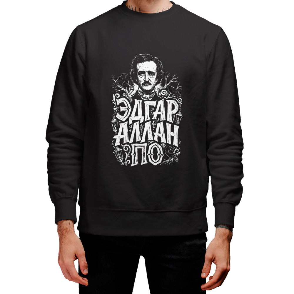 Мужской свитшот «Эдгар Аллан По. Портрет и Леттеринг»