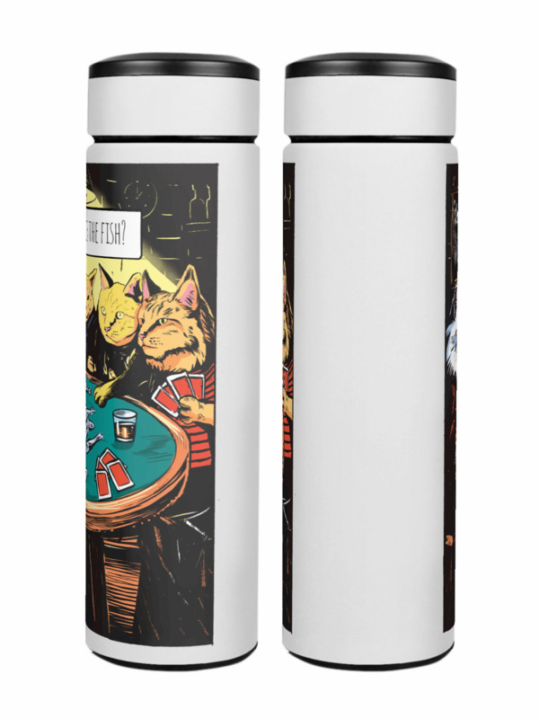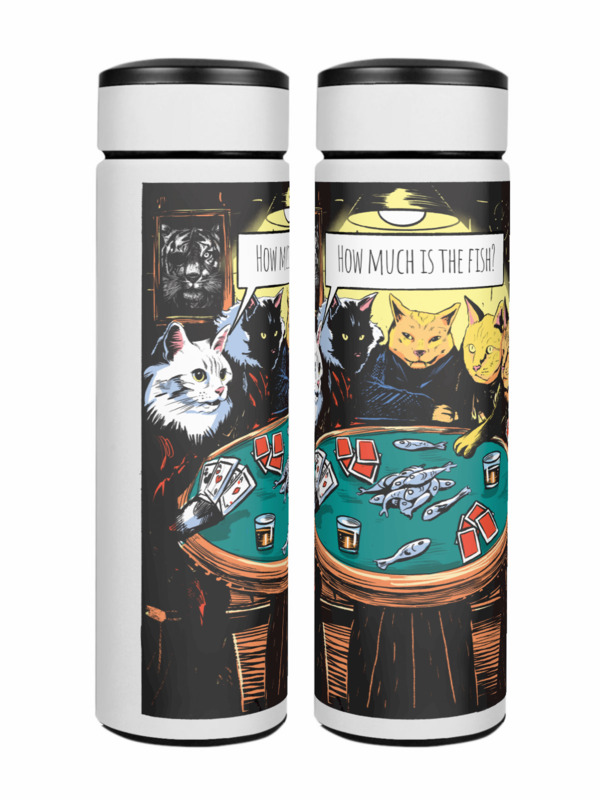 Термос «How much is the fish - Коты играют в покер» цвет белый