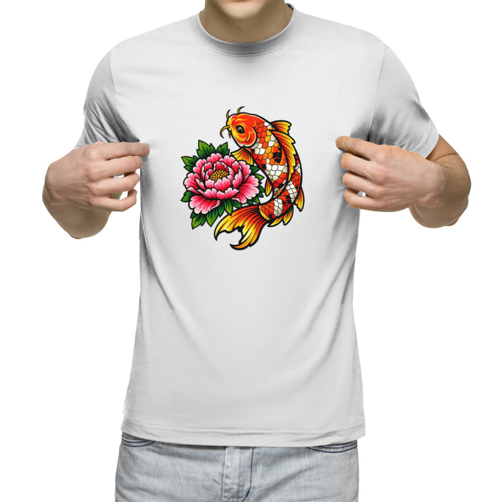 Мужская футболка «Карп кои с пионом»