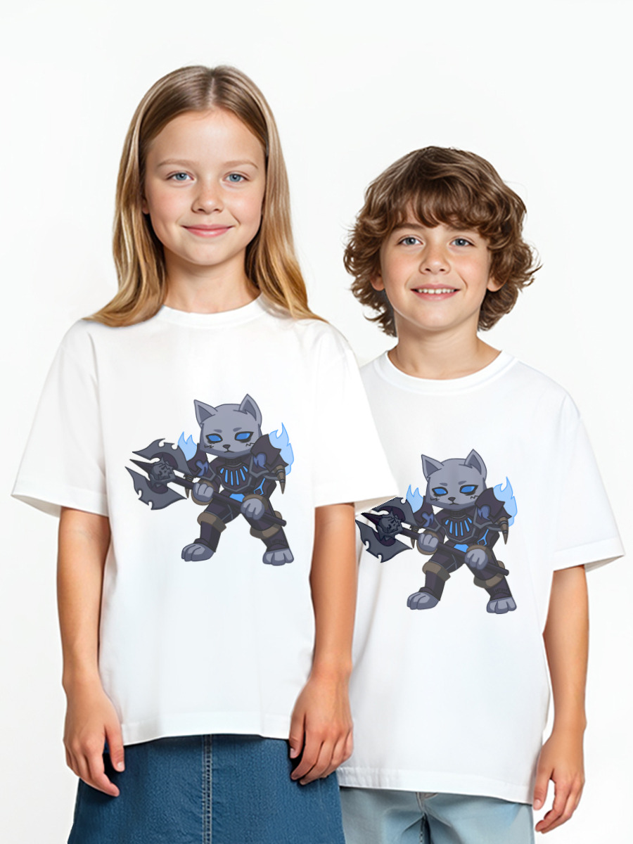 Детская оверсайз футболка «Кот - рыцарь смерти, Warcraft»
