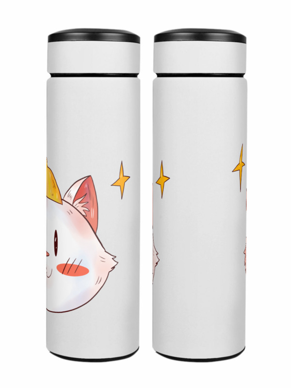 Термос «Кот с лимоном на голове» цвет белый