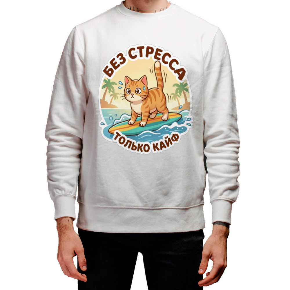 Мужской свитшот «Кот серфер принт летний дизайн»