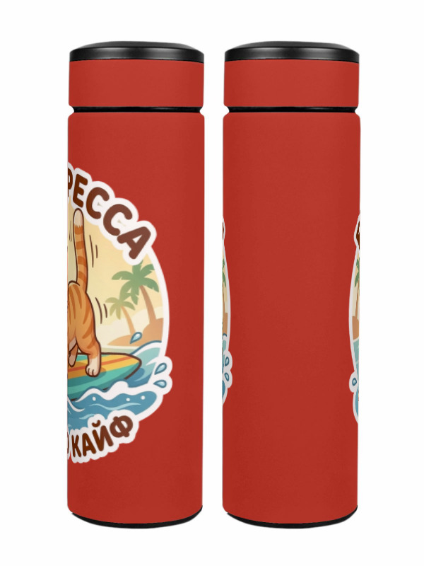 Термос «Кот серфер принт летний дизайн» цвет красный