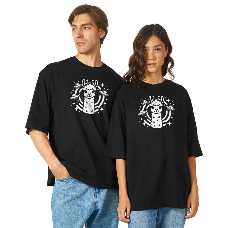Футболка оверсайз «Лама среди НЛО»