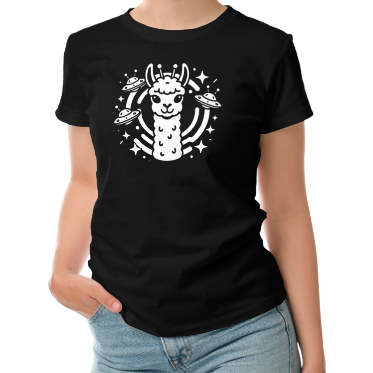 Женская футболка «Лама среди НЛО»