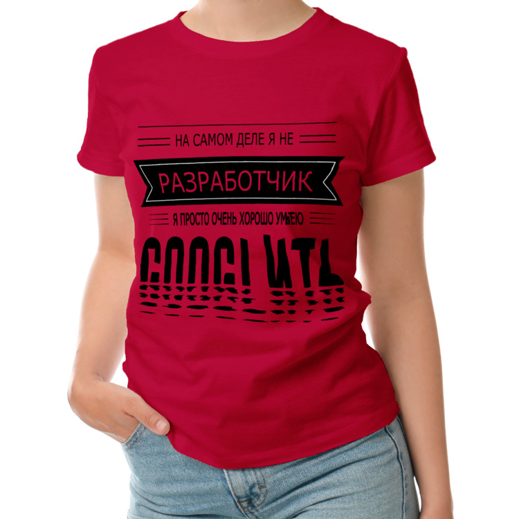 Женская футболка «Надпись На самом деле я не разработчик черная»