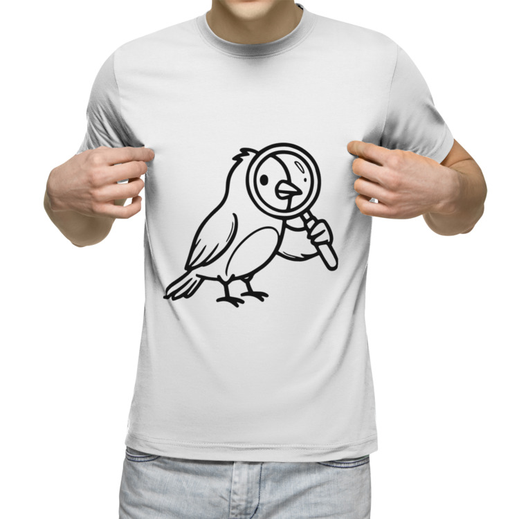 Мужская футболка «Птица-сыщик с лупой в лапке»