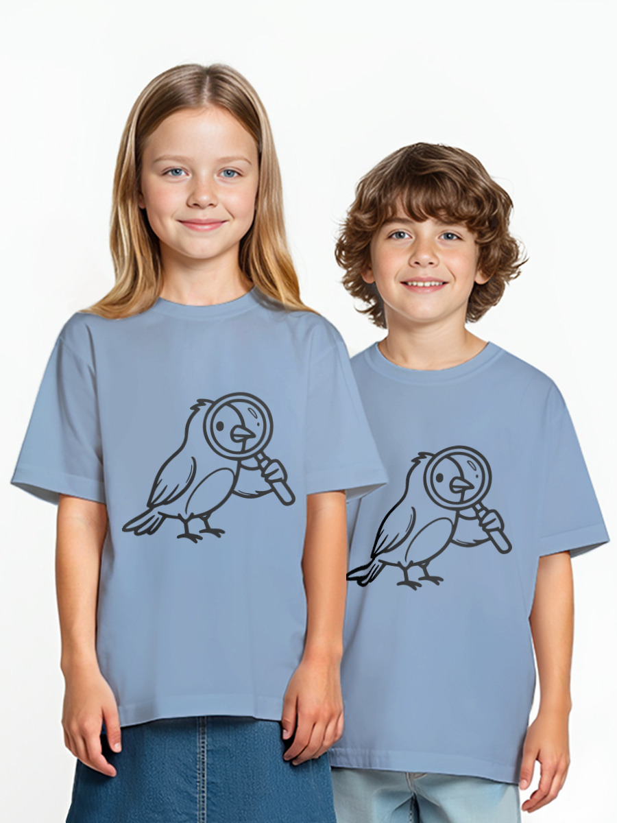 Детская футболка «Птица-сыщик с лупой в лапке»