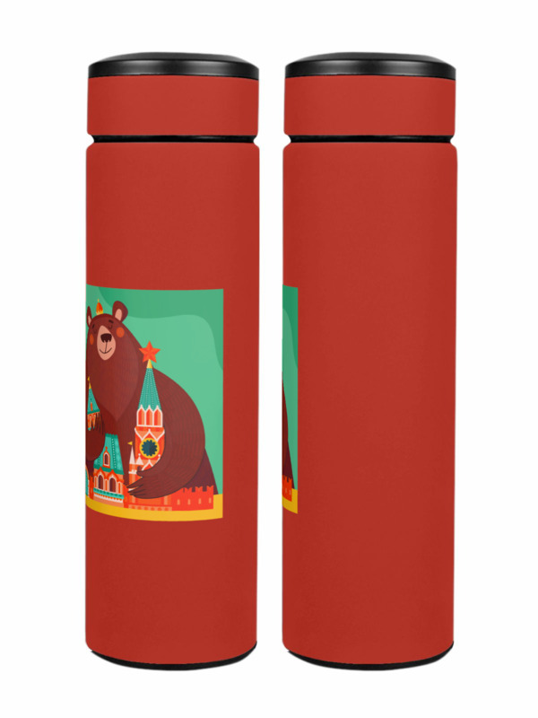 Термос «Русский медведь обнимает башни Кремля» цвет красный