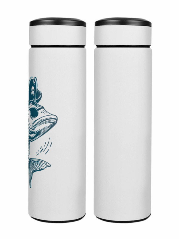 Термос «Рыба пират. Капитан корабля. Для моряка, рыбака» цвет белый