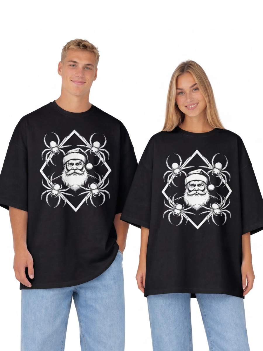 Футболка оверсайз «Санта в окружении пауков»