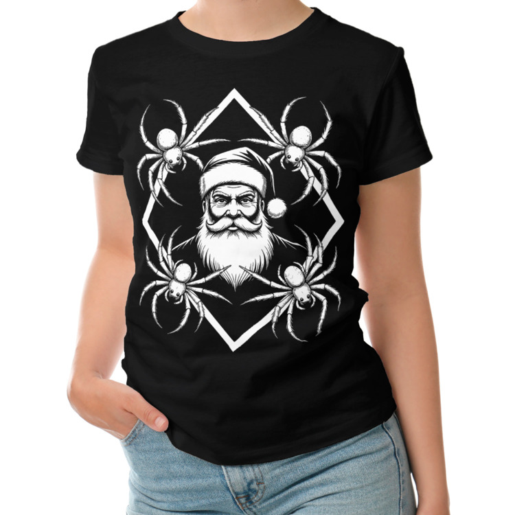 Женская футболка «Санта в окружении пауков»