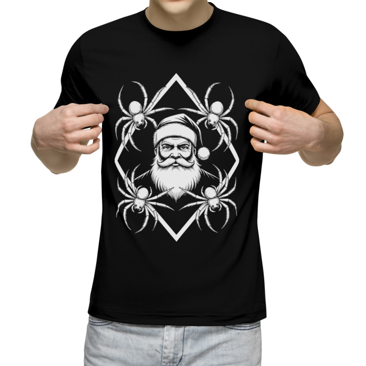 Мужская футболка «Санта в окружении пауков»