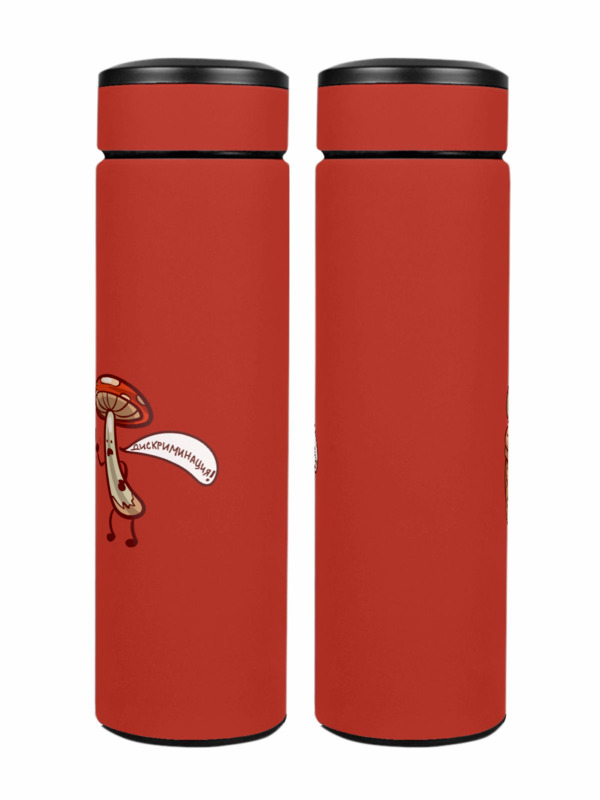 Термос «Смешные белые грибы с надписью, прикол мем мухомор» цвет красный