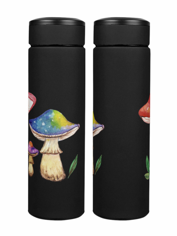 Термос «Цветные мухоморы» цвет черный
