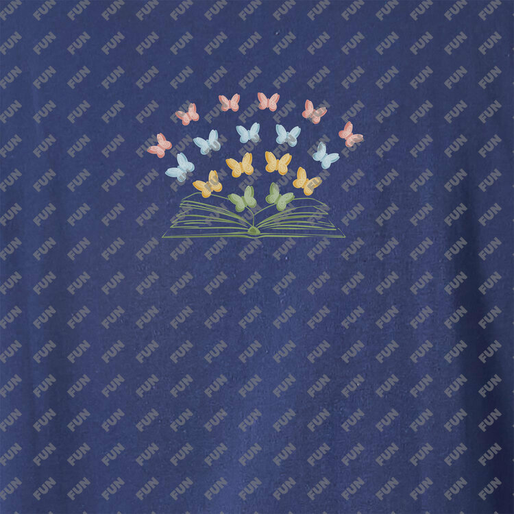 Футболка оверсайз «Бумажные бабочки вылетают из книги» цвет темно-синий