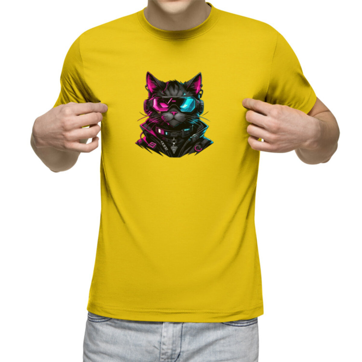 Футболка оверсайз «Кибер-кот в стиле киберпанк cyberpunk» цвет белый