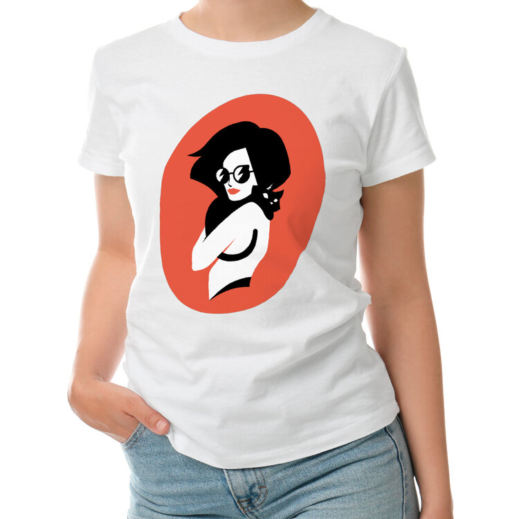 Футболка оверсайз «Модная женщина с кошкой. Ретро. Модель» цвет белый