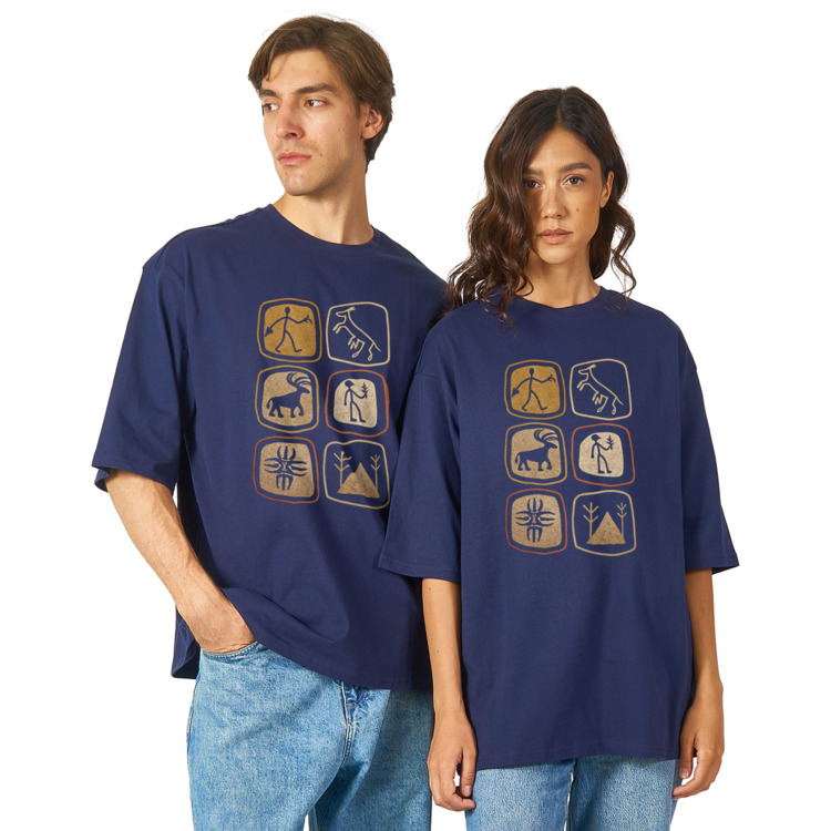 Футболка оверсайз «Петроглифы» цвет темно-синий