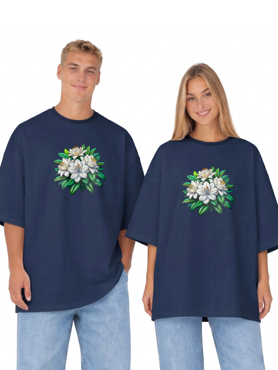 Футболка оверсайз «Рододендроны» цвет темно-синий