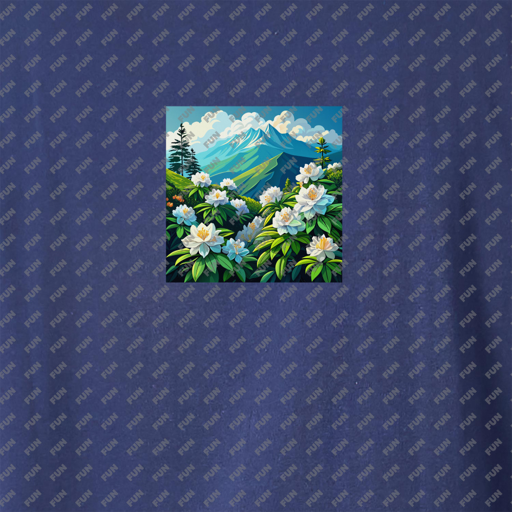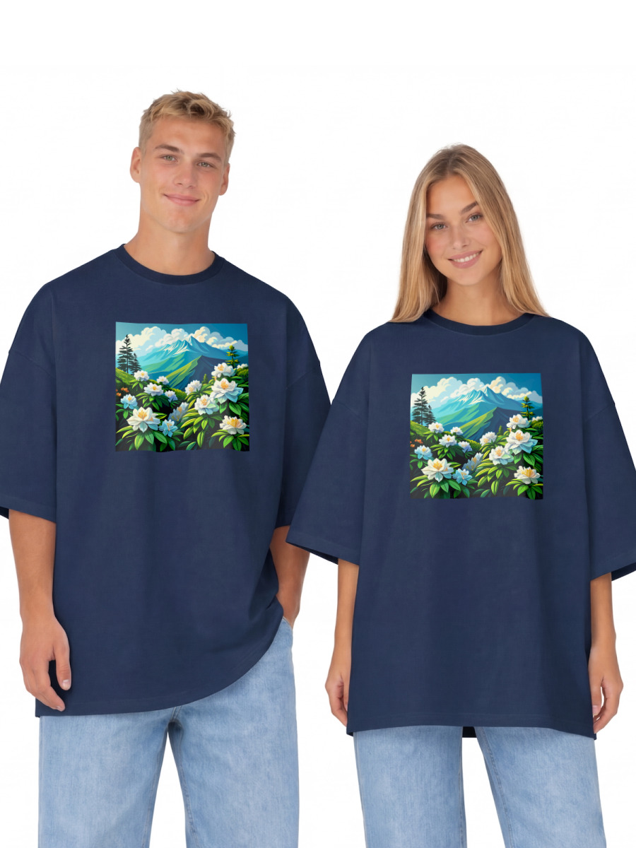 Футболка оверсайз «Цветы в горах» цвет темно-синий