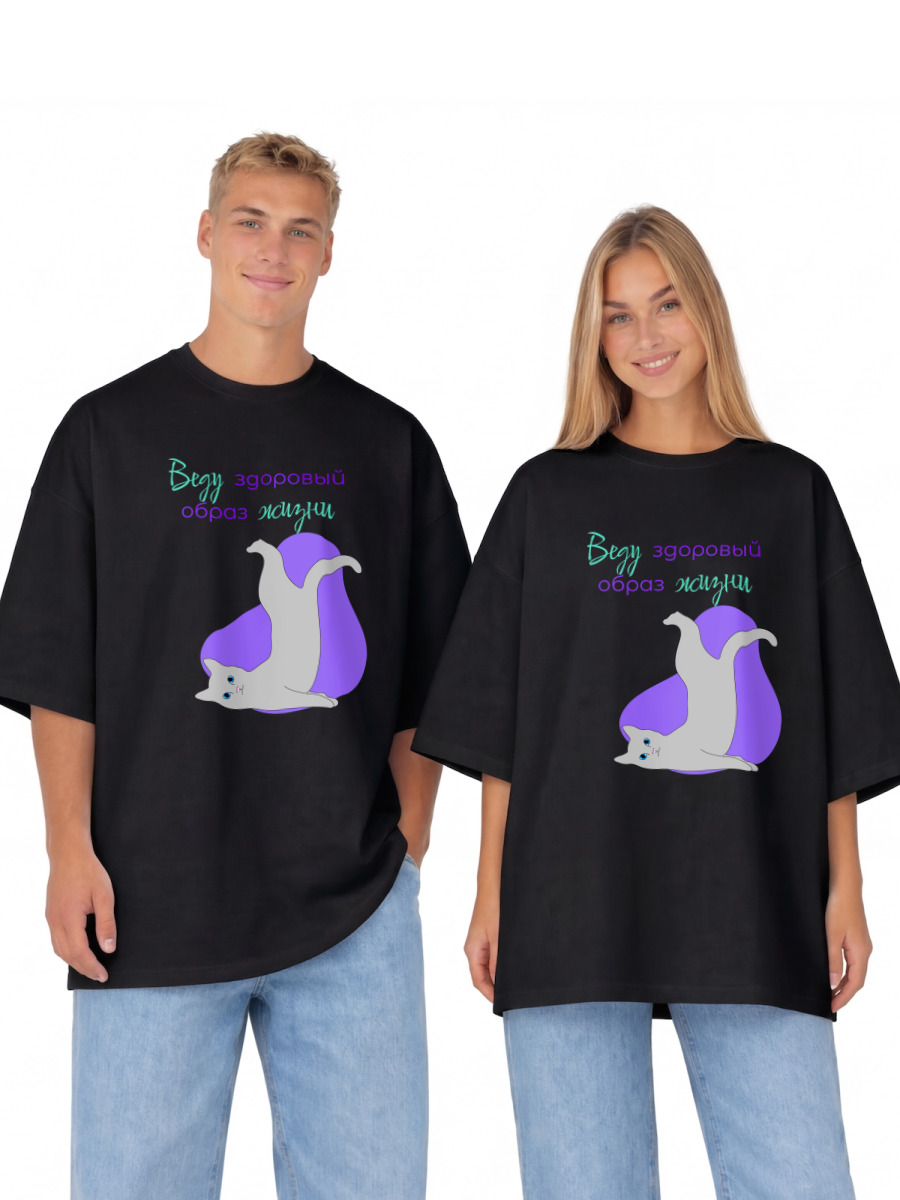 Футболка оверсайз «Веду здоровый образ жизни» цвет черный