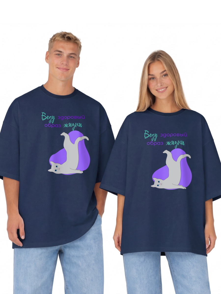 Футболка оверсайз «Веду здоровый образ жизни» цвет темно-синий