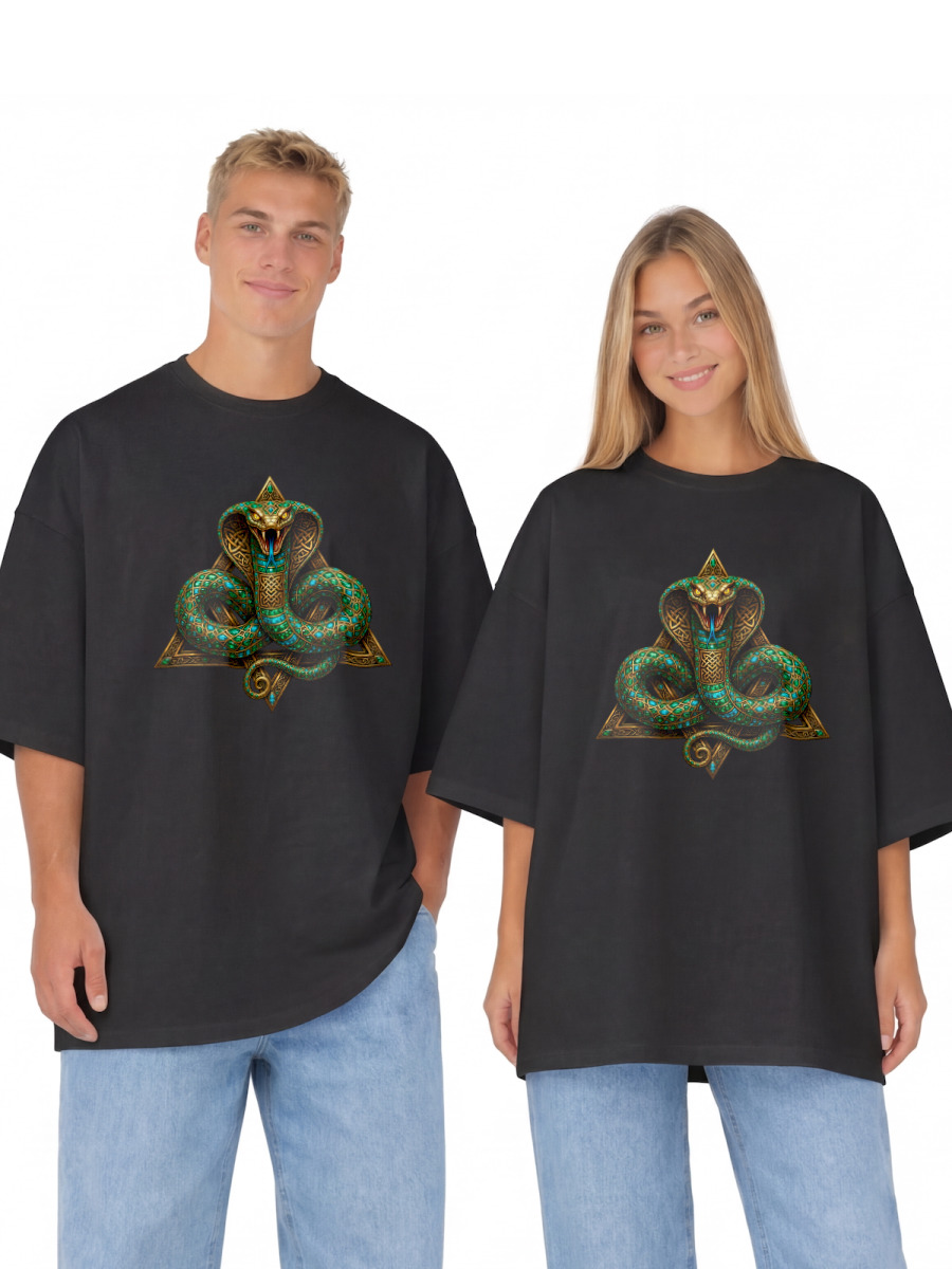 Футболка оверсайз «Змея в геометрии» цвет темно-серый
