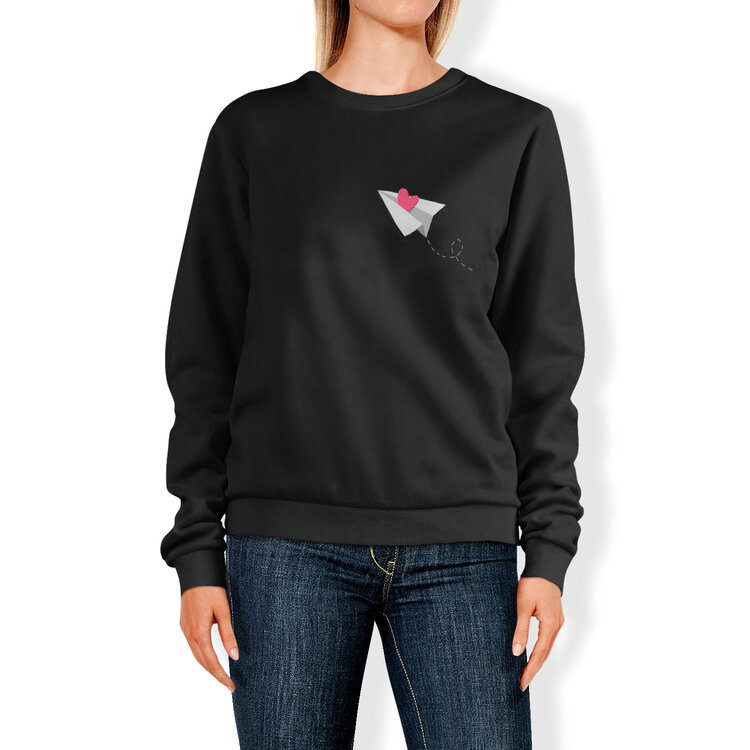 Женский свитшот «Бумажный самолетик с сердечком на день влюбленных» цвет черный