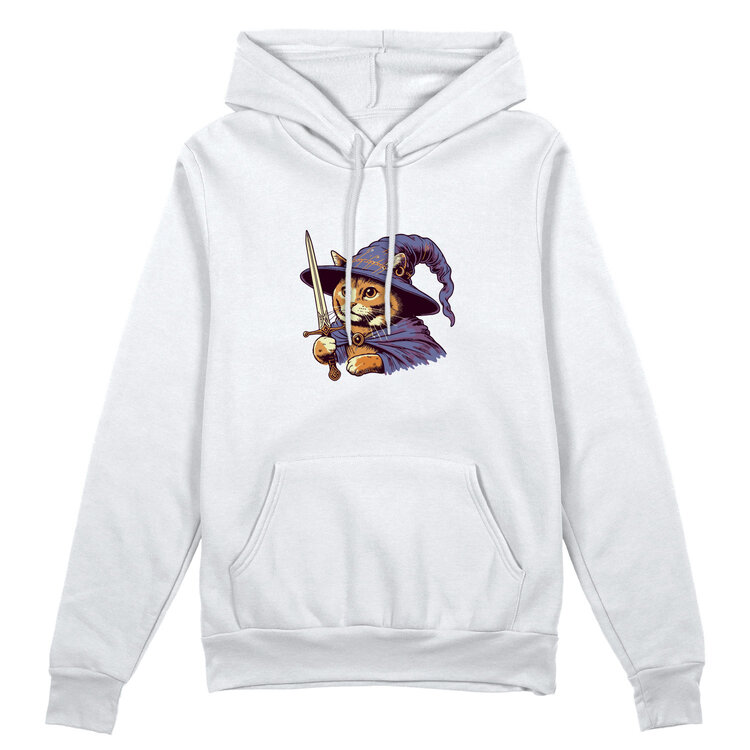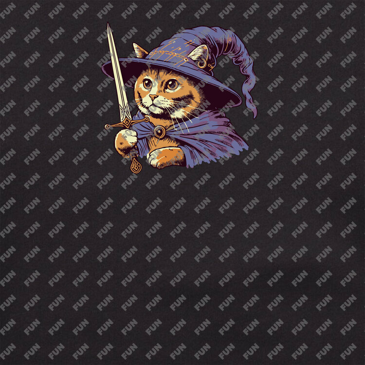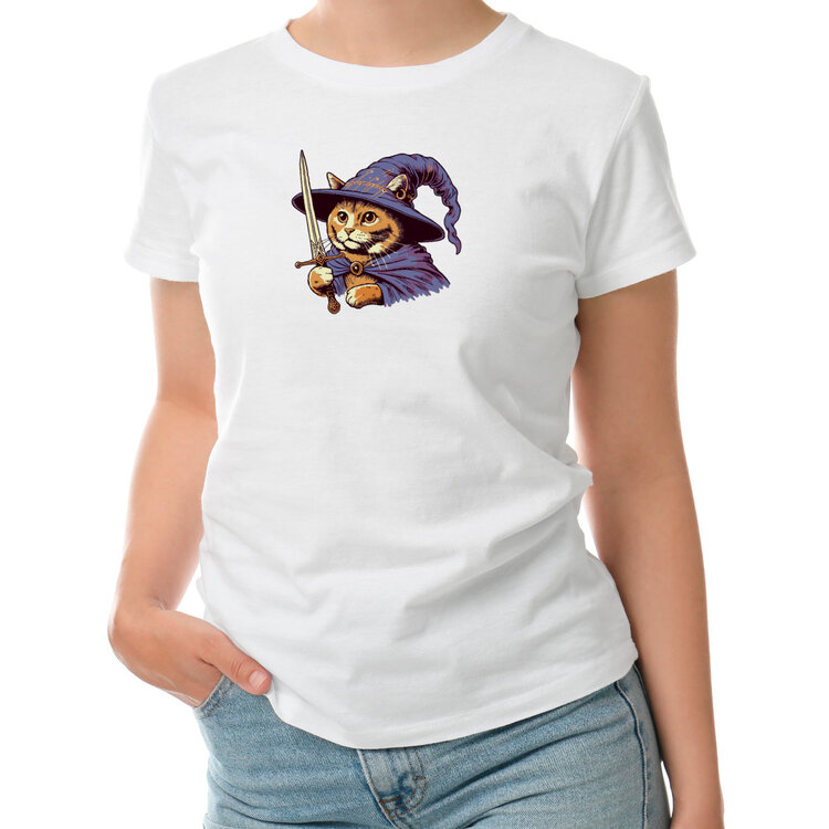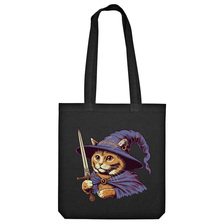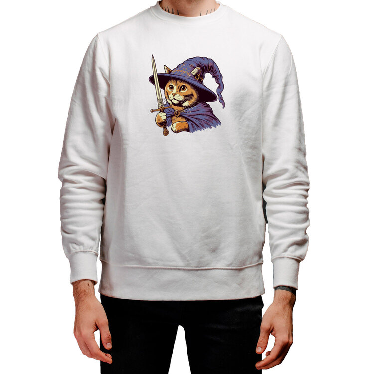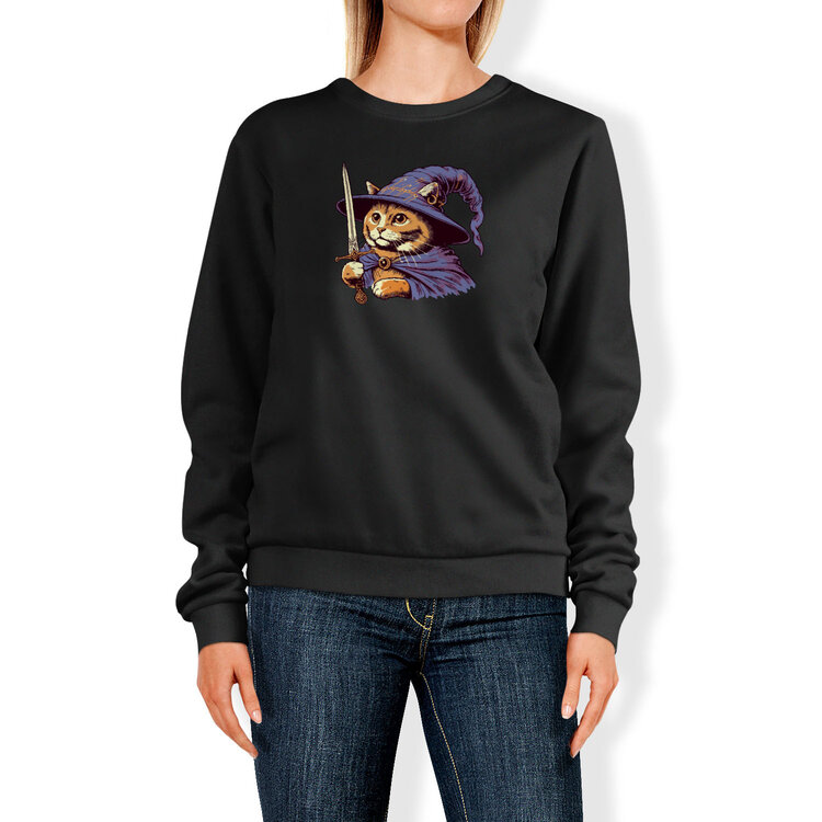 Женский свитшот «Кот эльф с мечом. Властелин колец пародия» цвет черный