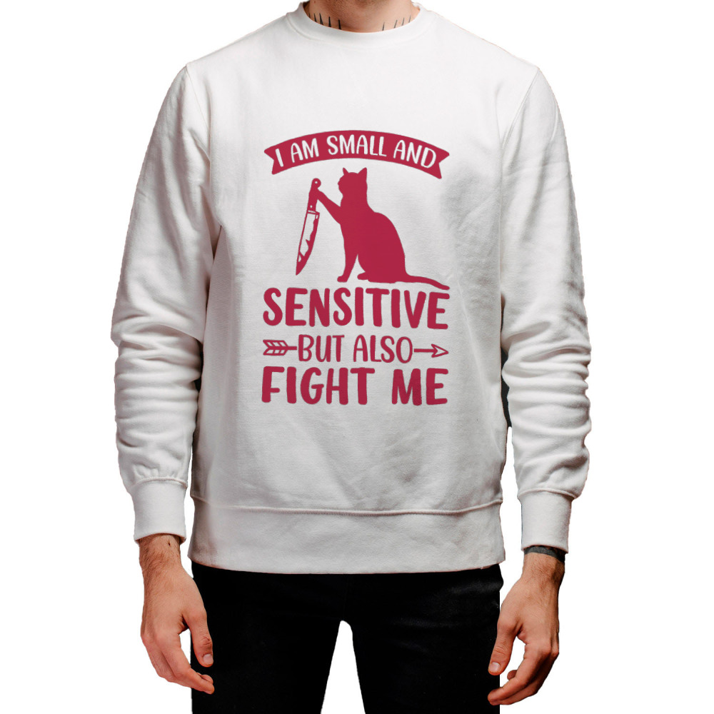 Женский свитшот «Кот с ножом, дерзкий слоган» цвет белый