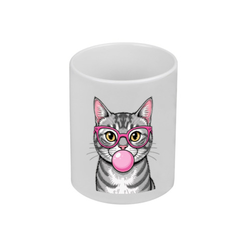Женский свитшот «Кот в розовых очках с жвачкой» цвет белый