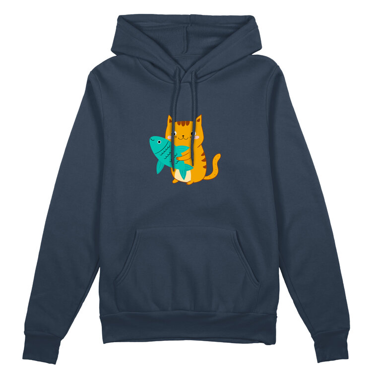 Женский свитшот «Рыжий котик с рыбкой» цвет темно-синий