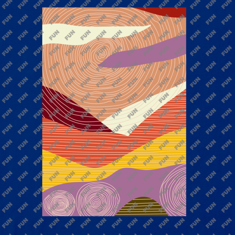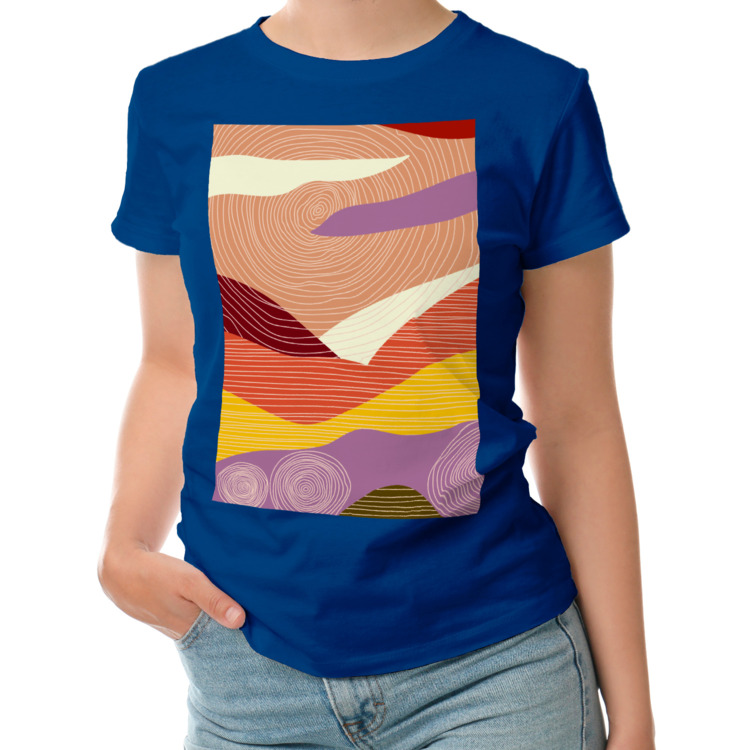 Женская футболка «Абстрактный пейзаж с солнцем» цвет темно-синий