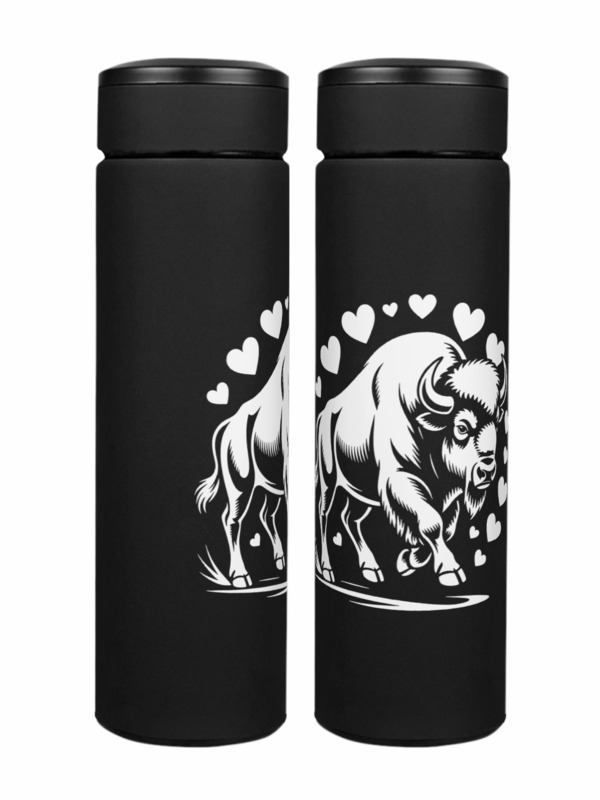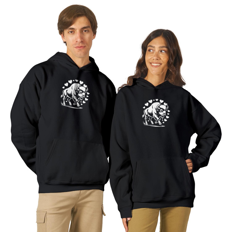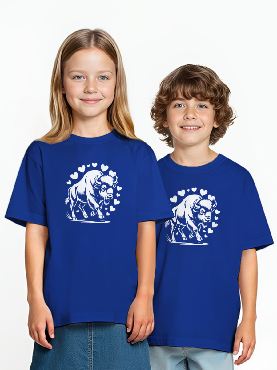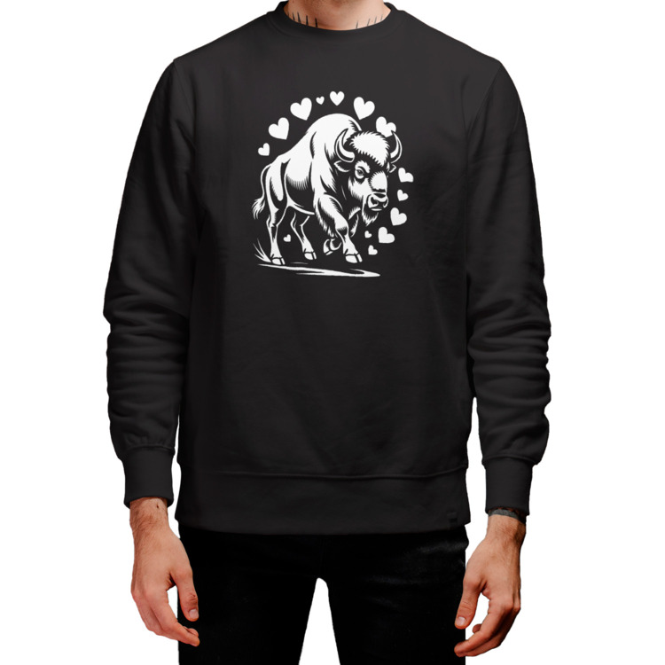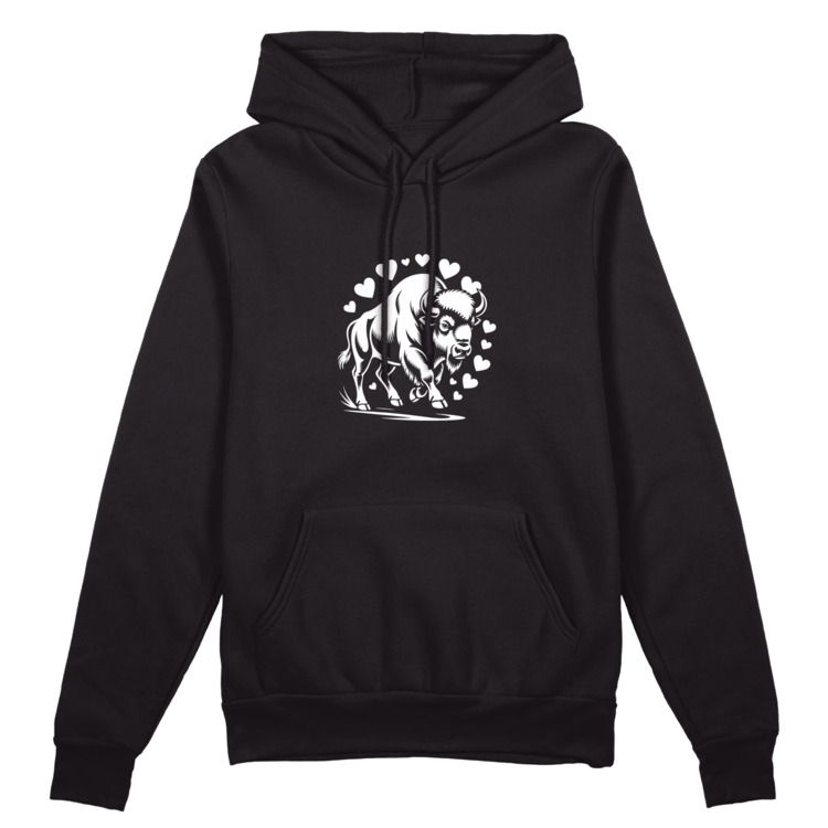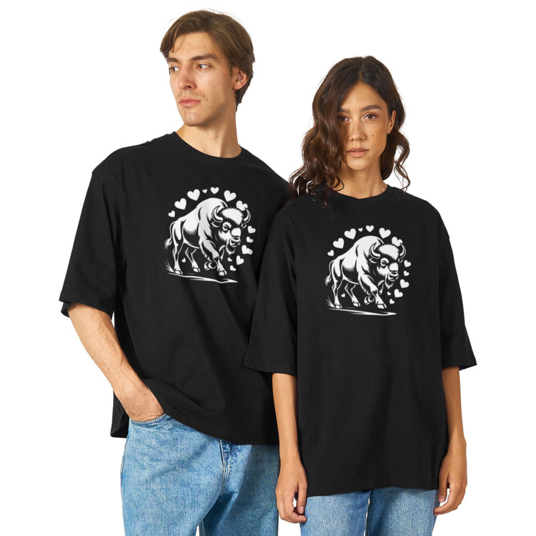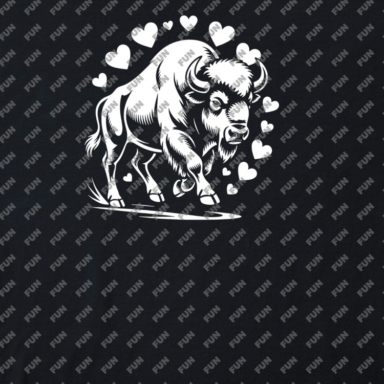 Женская футболка «Бизон в ореоле сердец» цвет черный