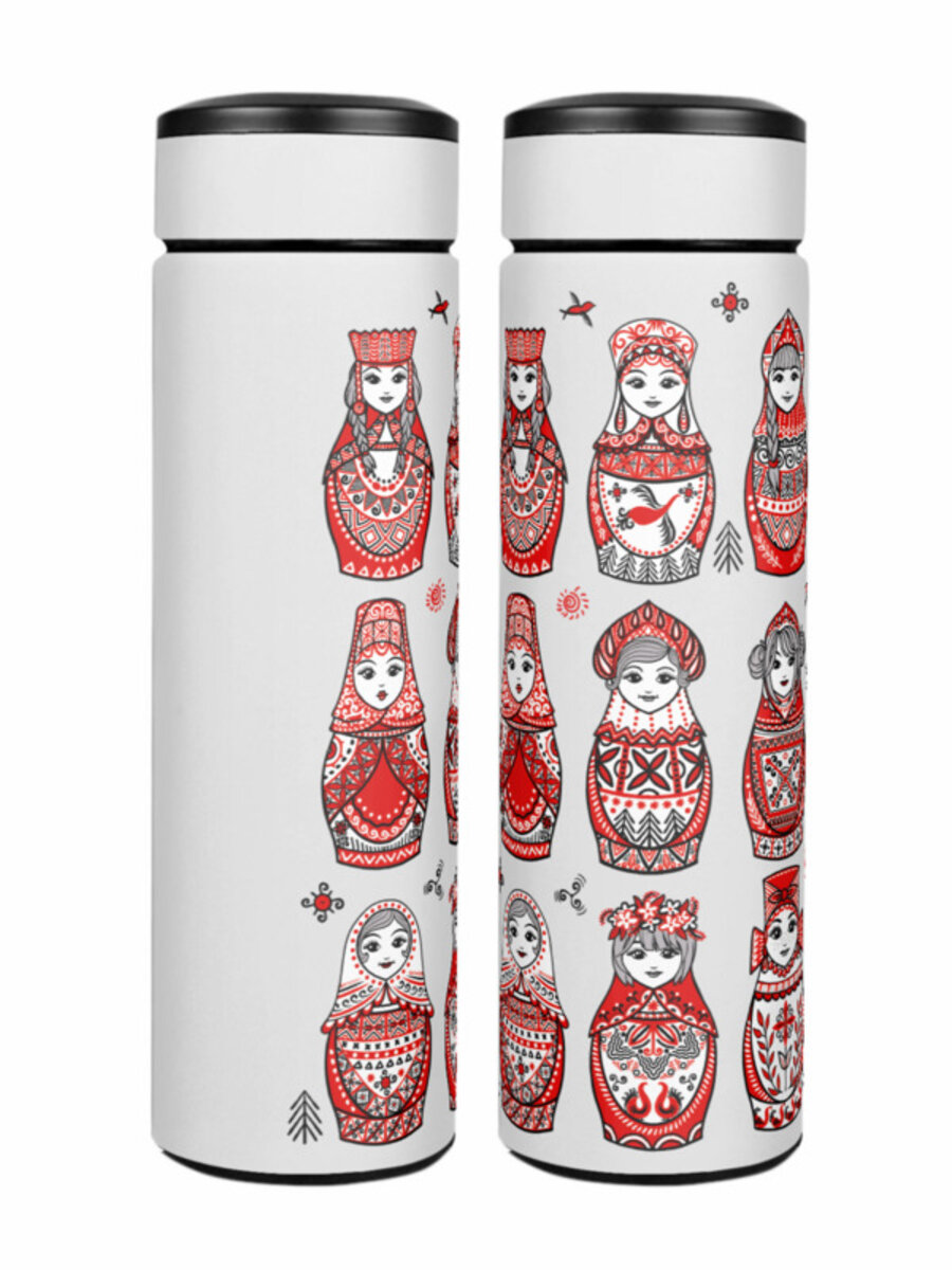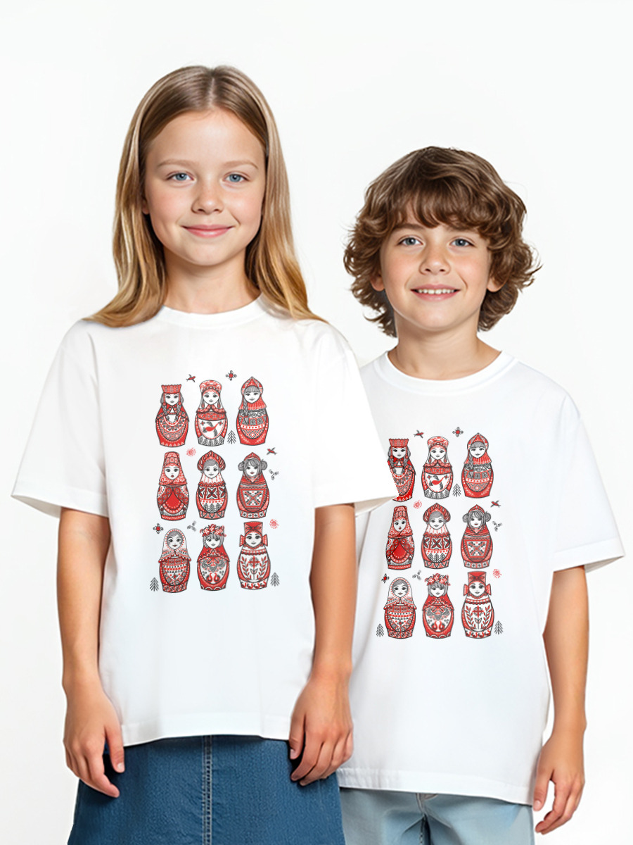 Женская футболка «Девять матрёшек. Мезенские мотивы.» цвет белый