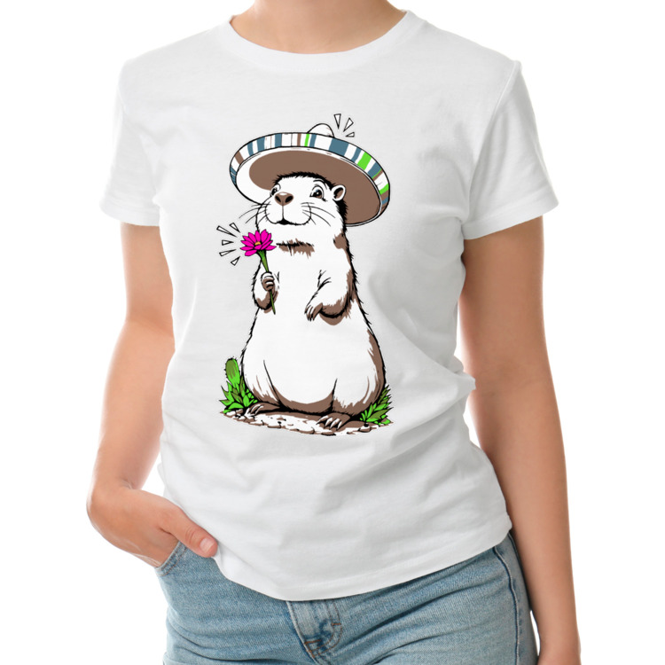 Женская футболка «Капибара весенняя» цвет белый