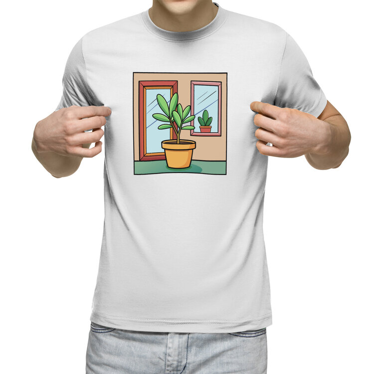 Женская футболка «Комнатное растение у окна» цвет красный