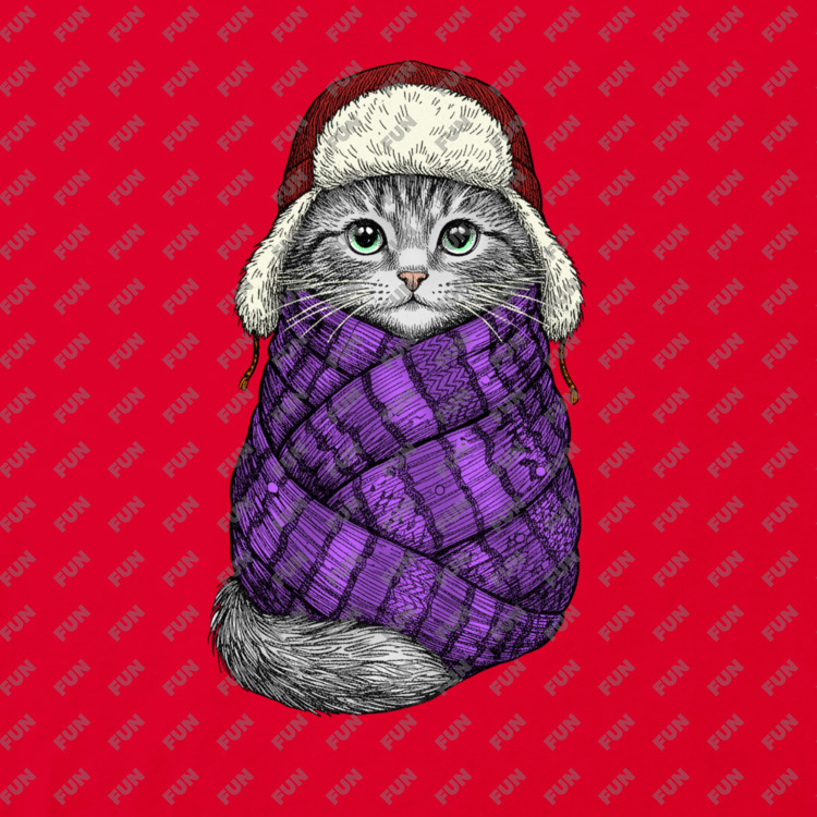 Женская футболка «Котик укутанный в шарф» цвет красный