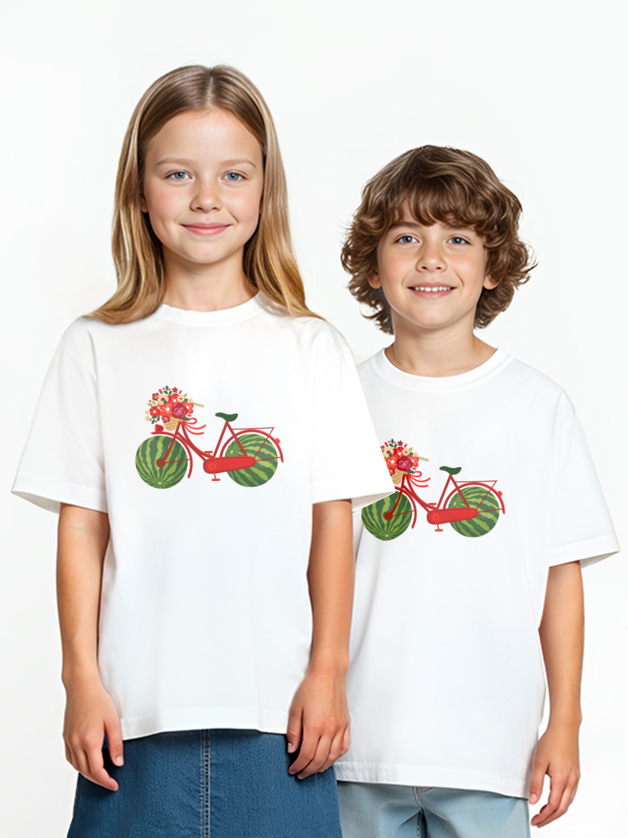 Женская футболка «Красный велосипед и колеса арбузы» цвет белый