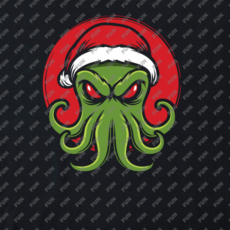 Женская футболка «Ктулху на Новый год. 2026. Осьминог в шапке» цвет черный