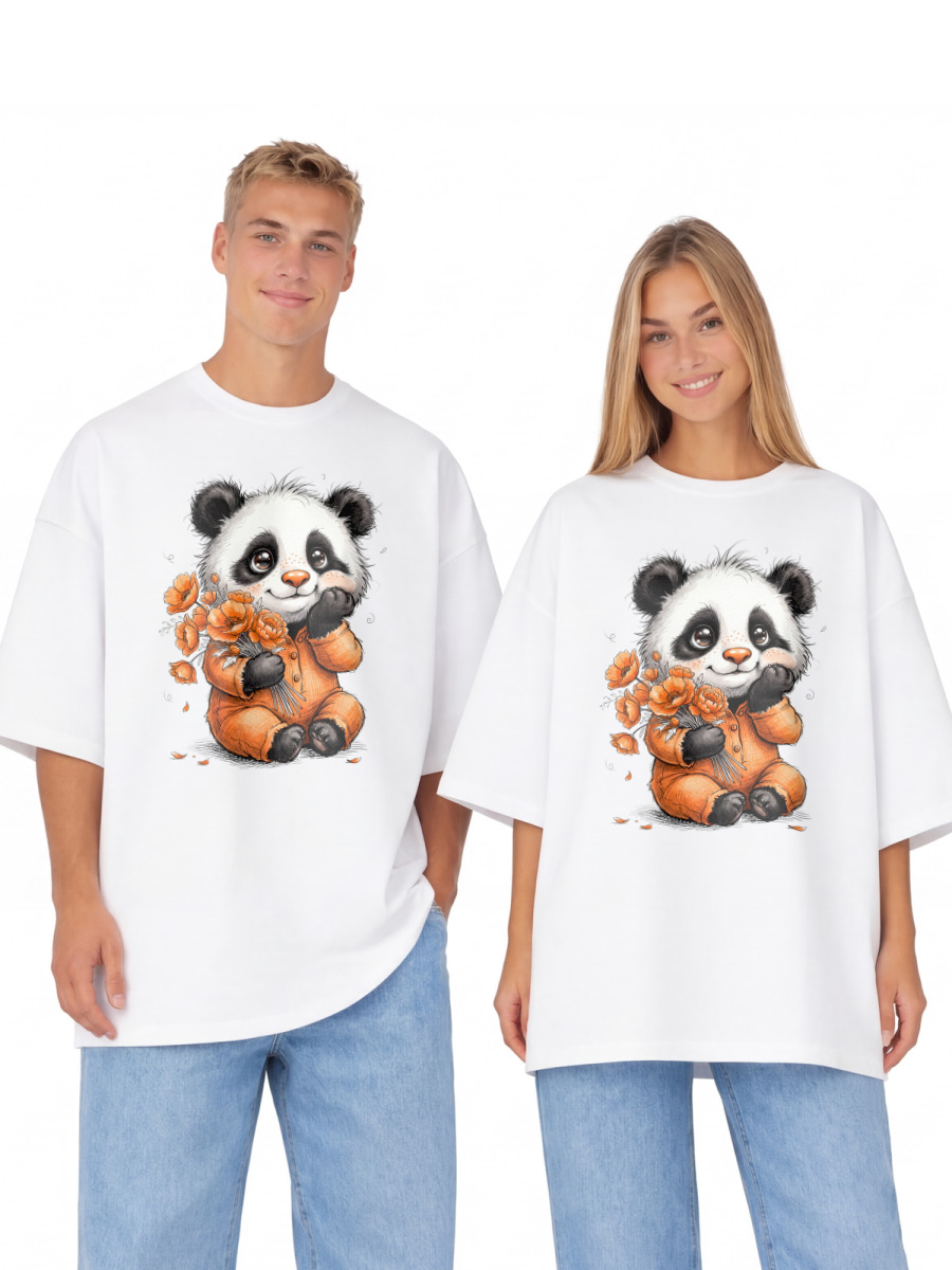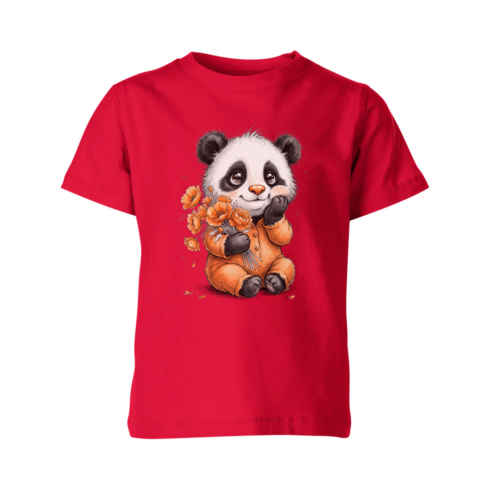 Женская футболка «Панда в пижаме с цветами для нежных и мечтательных» цвет красный