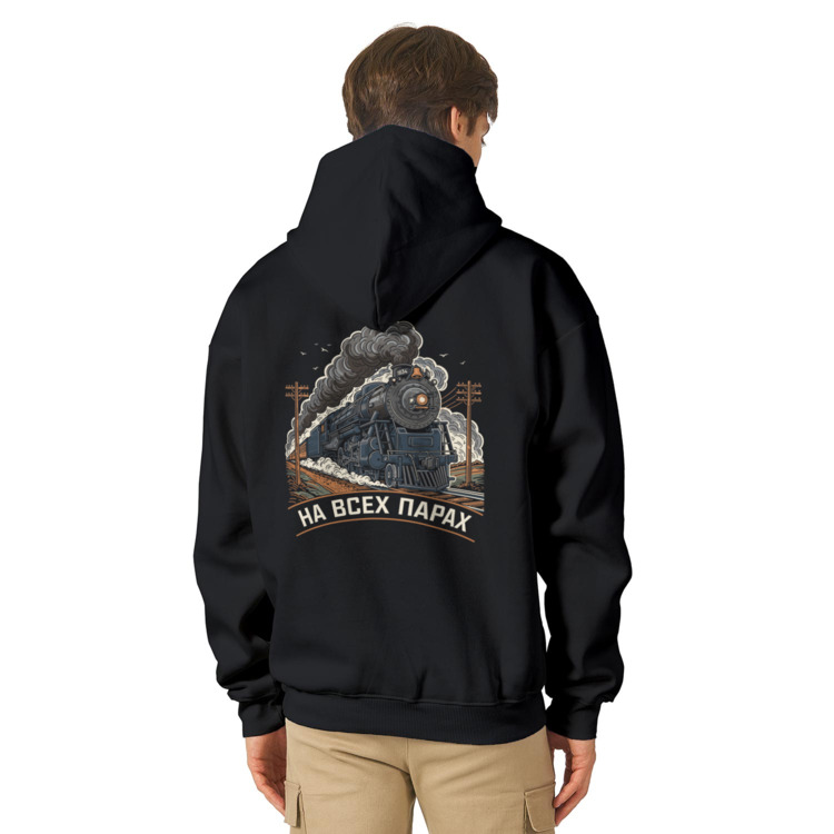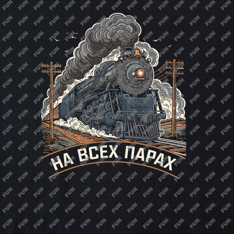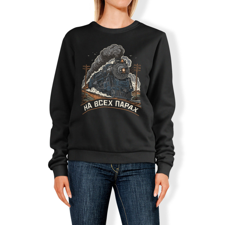 Женская футболка «Паровоз на железной дороге - На всех парах» цвет черный