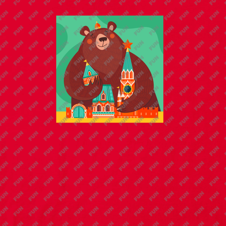 Женская футболка «Русский медведь обнимает башни Кремля» цвет красный