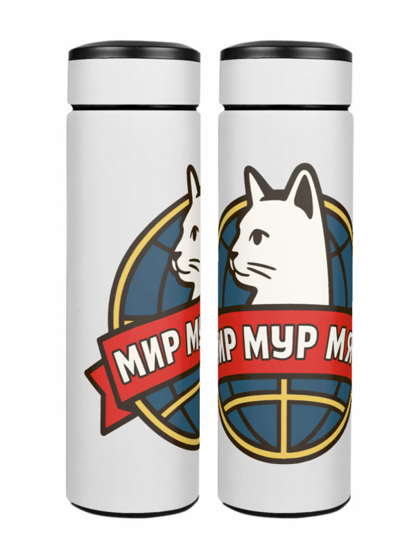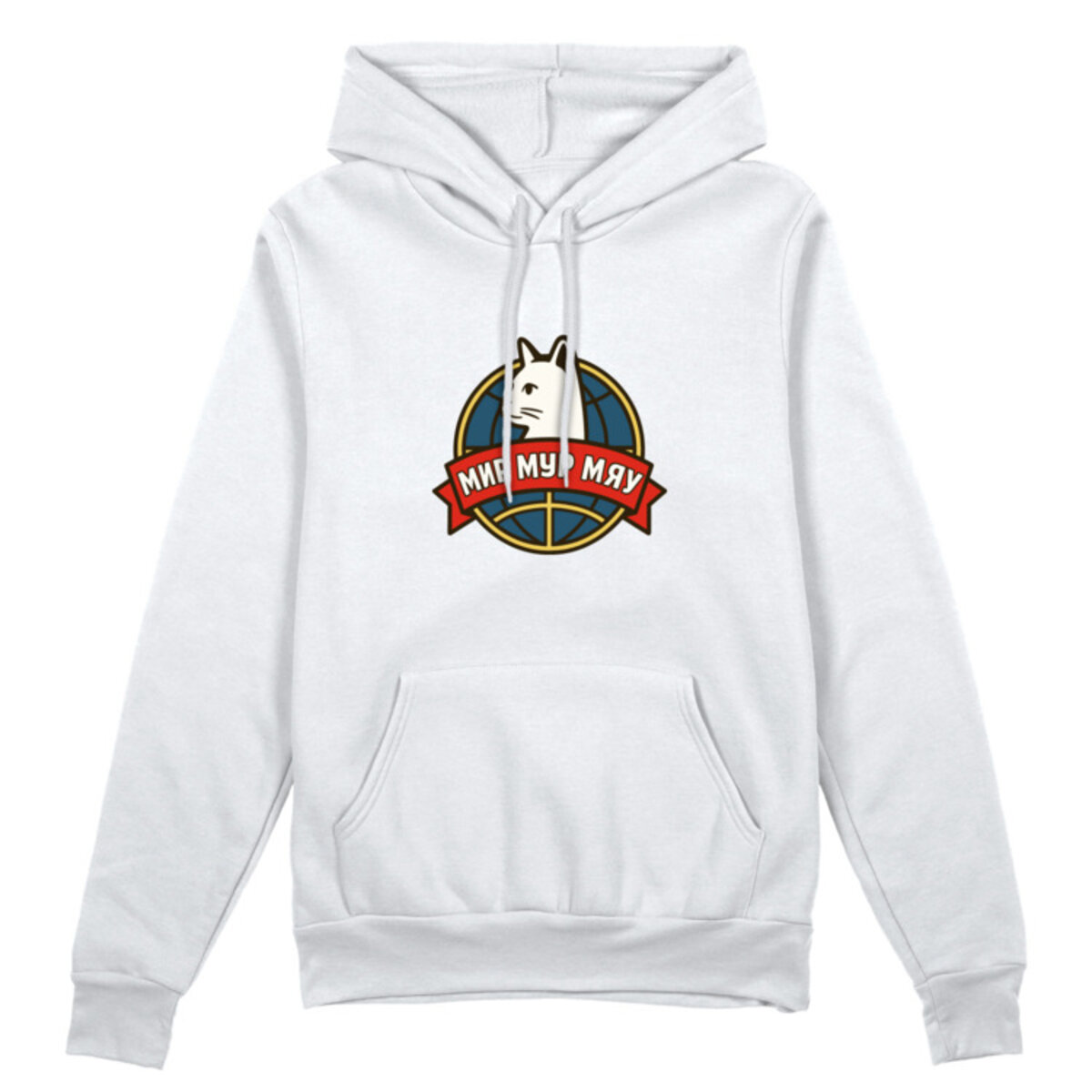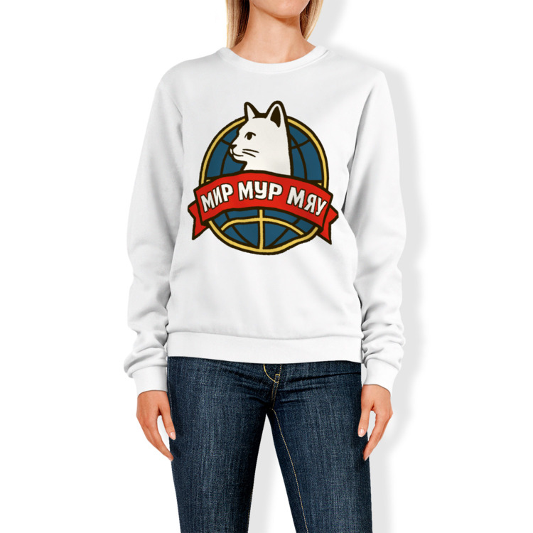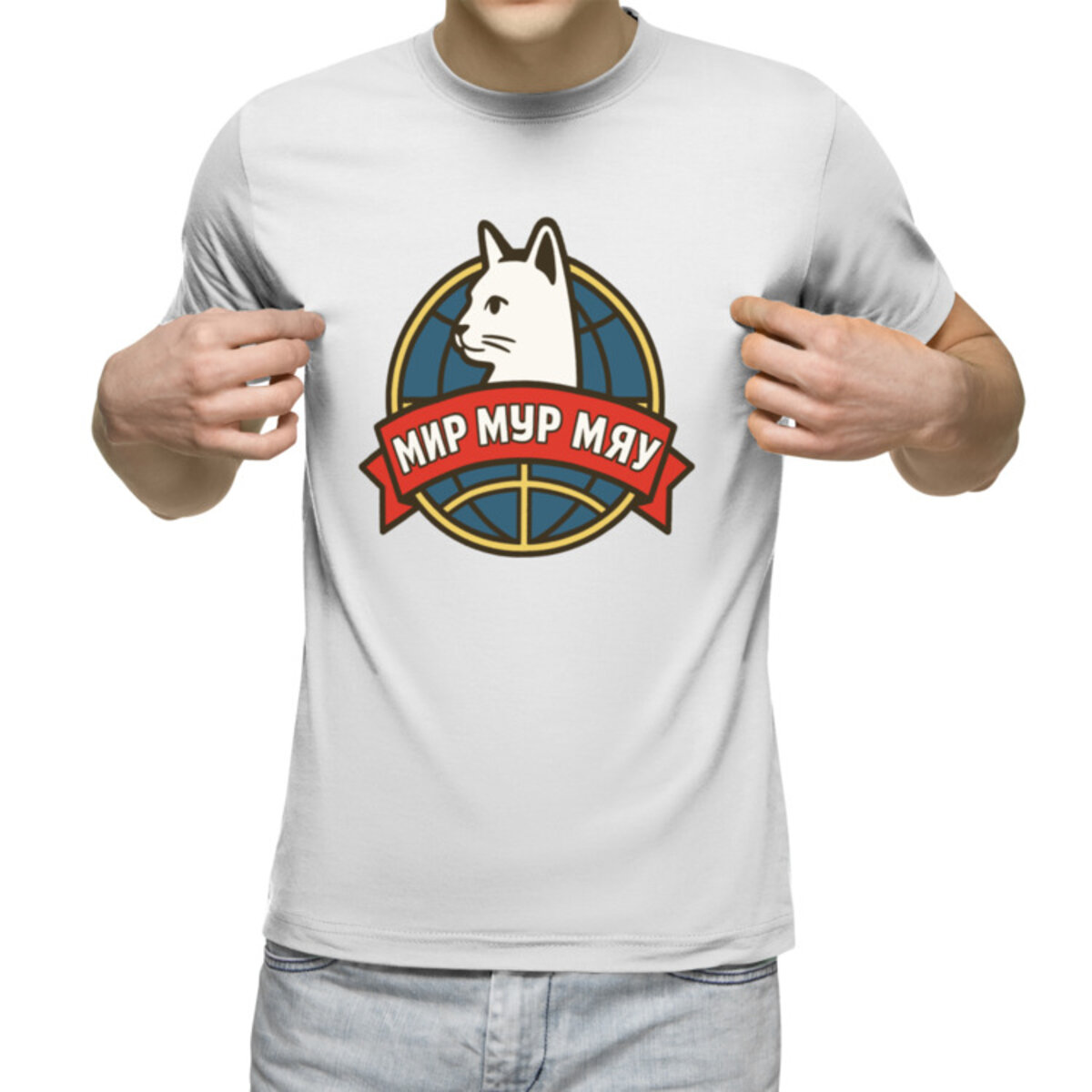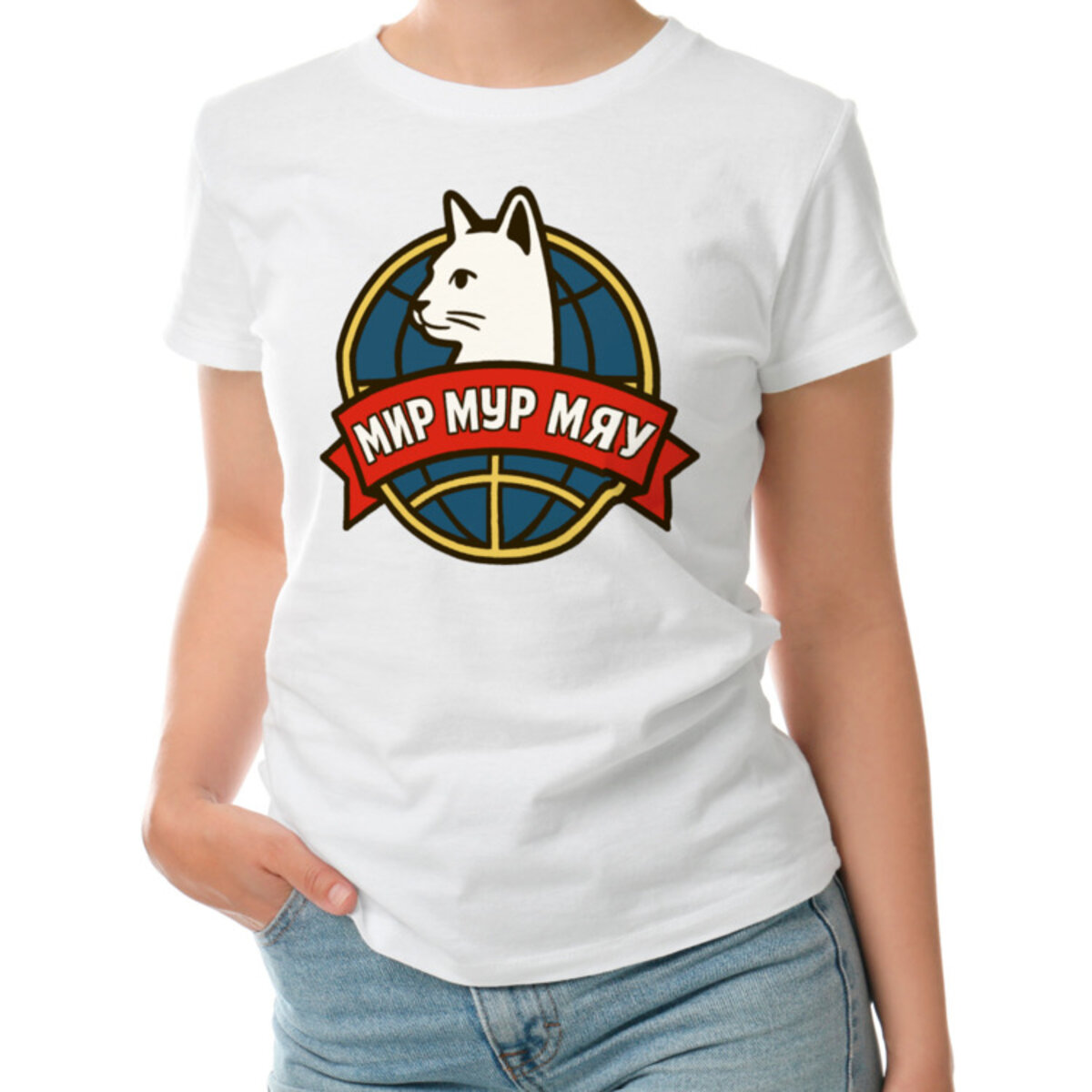 Женская футболка «С котом Мир Мур Мяу Мир Труд Май» цвет белый