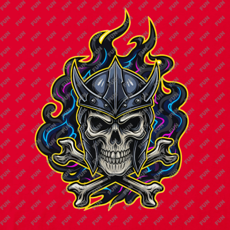 Женская футболка «Воин-Череп в Шлеме Огонь и Кости» цвет красный