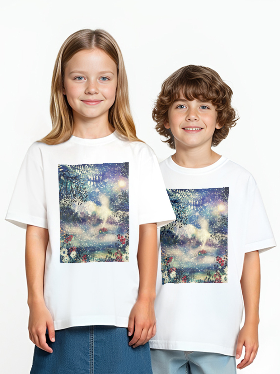 Женская футболка «Зимний пейзаж с домиком» цвет белый